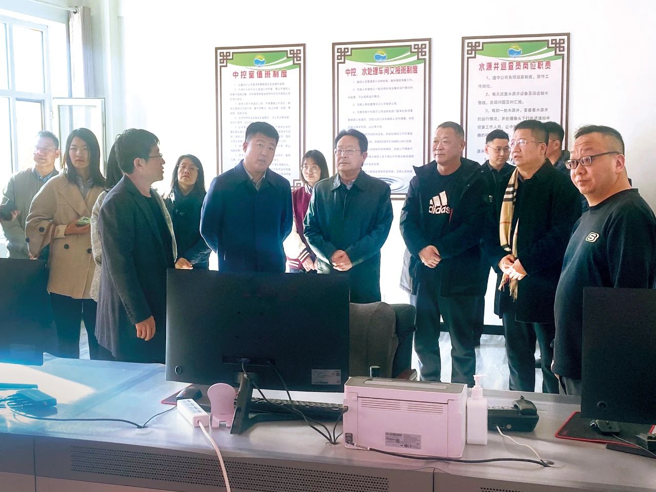 2月16日,中共呼和浩特市委二級(jí)巡視員、呼和浩特市社科聯(lián)副主席、呼和浩特市城市科學(xué)研究會(huì)副理事長(zhǎng)李撫滄與碩達(dá)智水董事長(zhǎng)頡春春、包頭首創(chuàng)水務(wù)制水廠景曉輝等一行13人赴杭錦后旗億源水務(wù)有限責(zé)任公司參觀考察,進(jìn)一步落實(shí)合作意向,深入了解合作政策及合作模式。億源水務(wù)董事長(zhǎng)李哲宇、總經(jīng)理吳云飛及各部門負(fù)責(zé)人陪同參觀并出席座談。